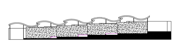 Scheme A was the development of collective contributions made by all members of the group. The idea for the temporary exhibition space was to create three large “fins” on the group behind the entrance. The three fins were a copy of the roof placed vertically, this allowed a connection between Lubetkins work and the temporary exhibition to be made. The fins were located close enough to one and other that people would have to follow the route the group wanted them to take. Further exhibition spaces for mixed media works would be created inside the booths themselves, with artwork being presented to visitors as they entered.