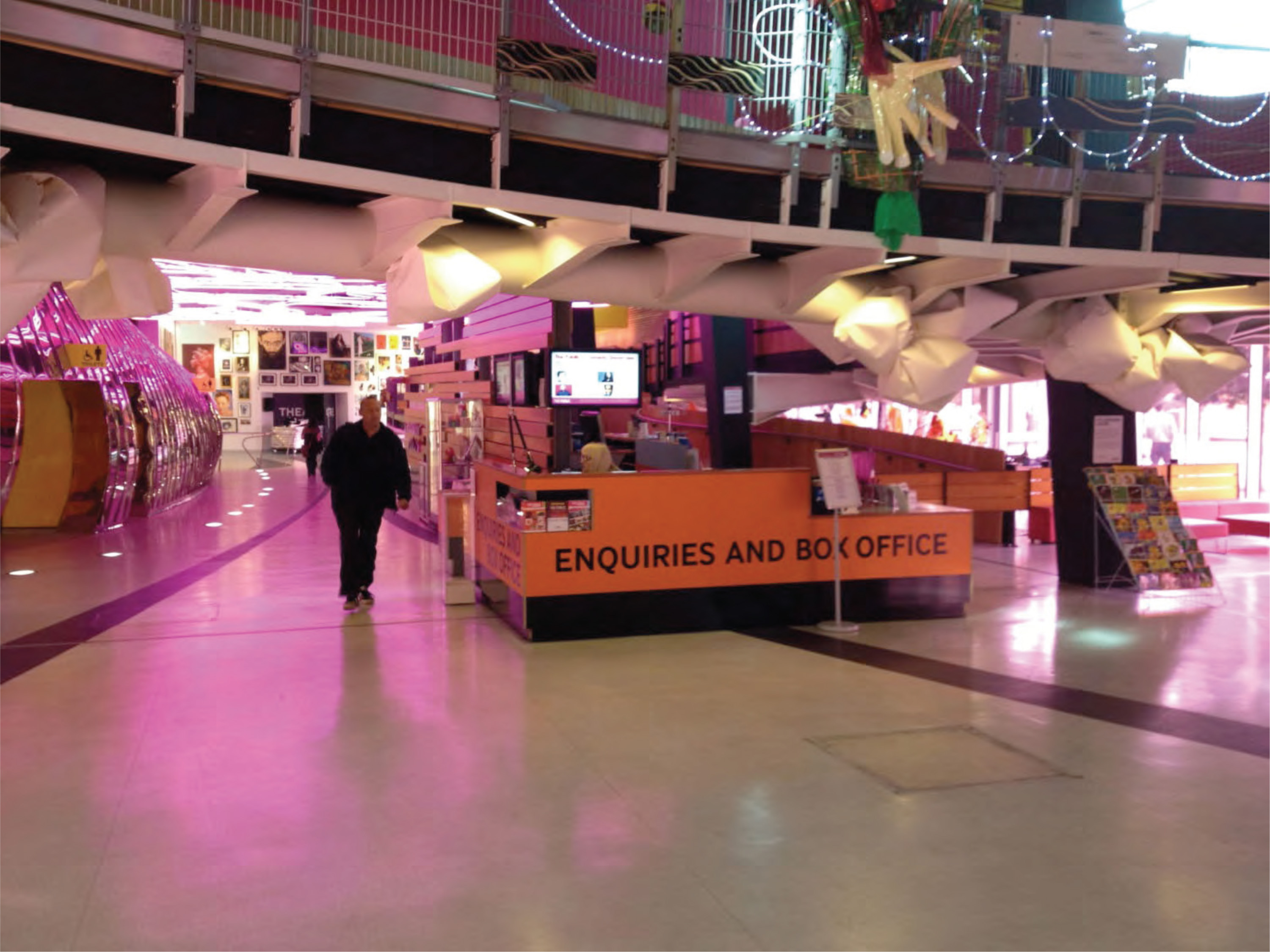 Reception and the Box Office are located at the start of the ramp, as you can see visibility is blocked which is why the client wants to relocate the reception in the center of the atrium.