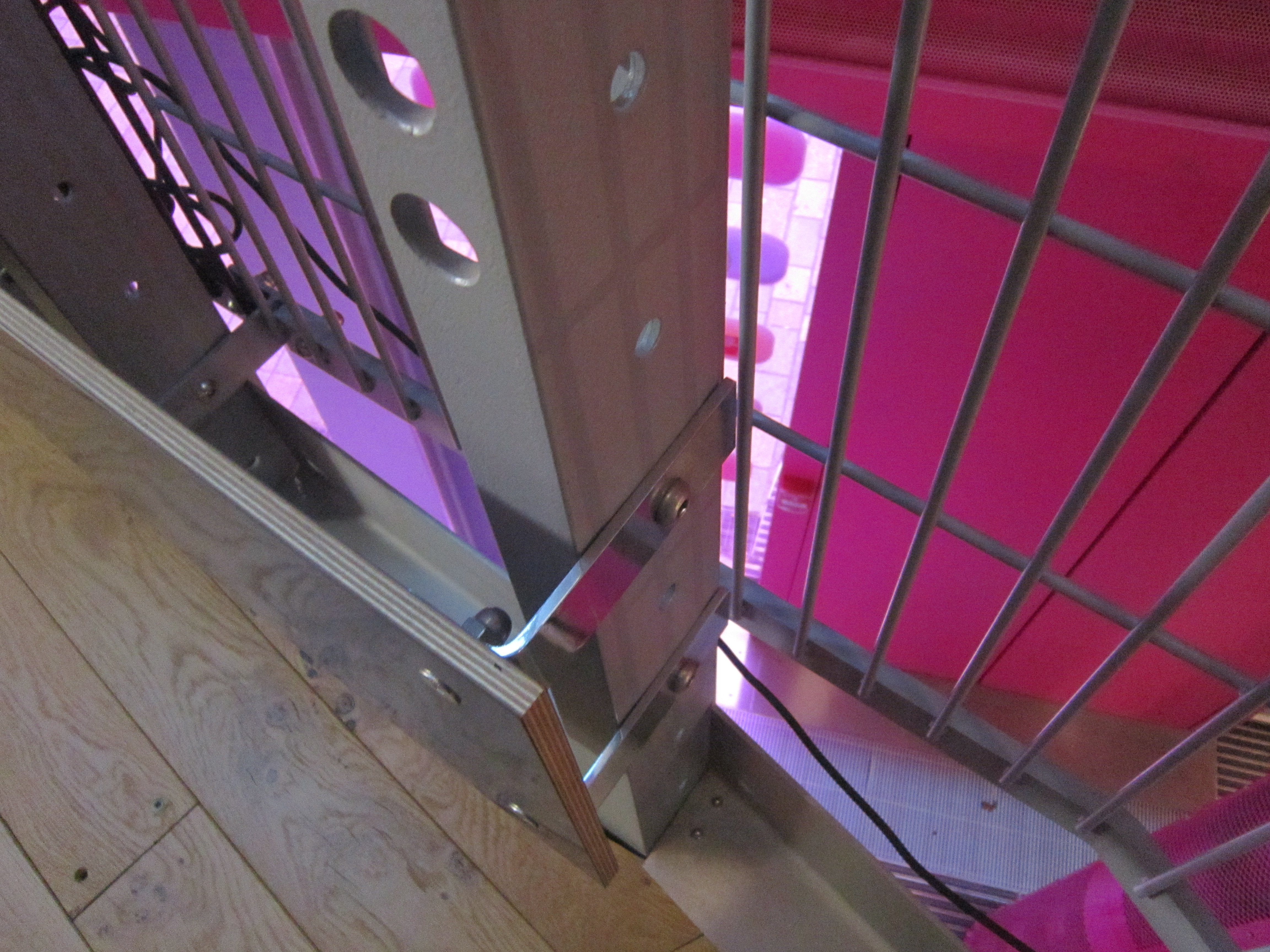 A contemporary glass vitrine was required for more space to store art work which was created by youths in onsite workshops. Also there was an opportunity to capitalise on the balustrade system again; in this instance Graham wanted a large canvas structure to display photographic or painted art work.