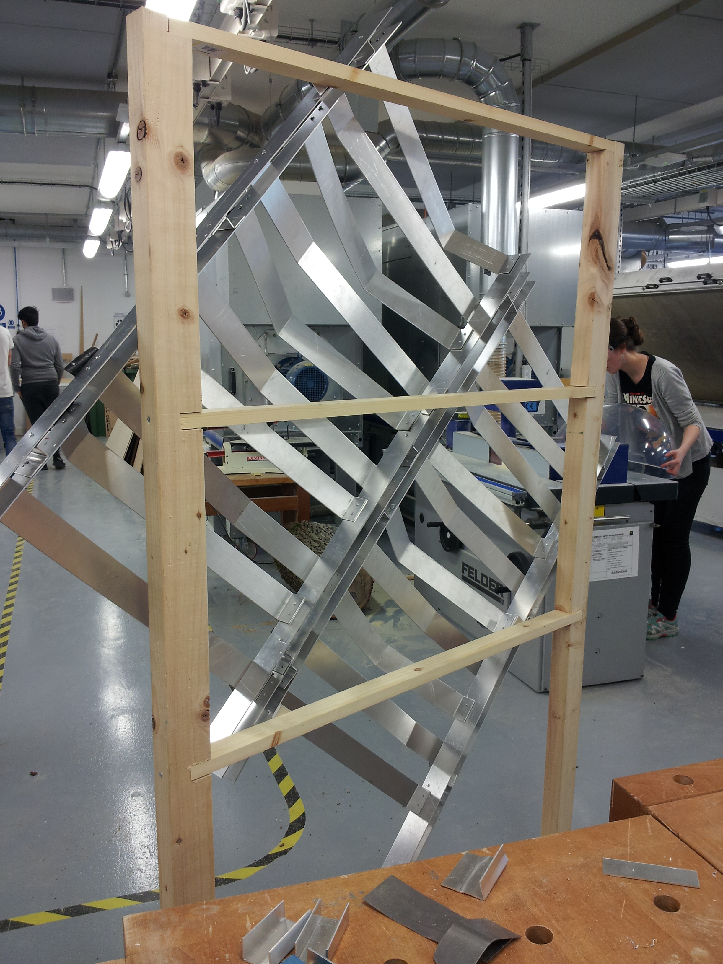 For the final model we chose the scale 1:2 instead of 1:1 because it allowed us to be able to show more of the screen inside the 1:1 frame and how it worked, rather than the full scale model. This time everything was more efficient as we learnt from the process of making the sketch 1:10 model. We also left pealing the covering off the aluminium till last-and when appropriate, so that we could minimise the amount of fingerprints.