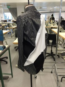 During this workshop we worked with fashion and textiles students to distort a garment by making cuts in them and inserting new pieces of fabric. We started with a shirt and inserted contrasting coloured fabric. The results were unpredictable; it