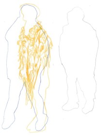 The first drawing workshop alongside the fashion students gave us the opportunity for focus our drawing skills on quickly recording the form of a figure. There were several exercises including drawing the outline of a silhouette and using contrasting colours