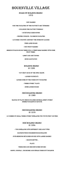 Above post show the new characteristics and rules of houses design over the year in Bournville Trust Village .